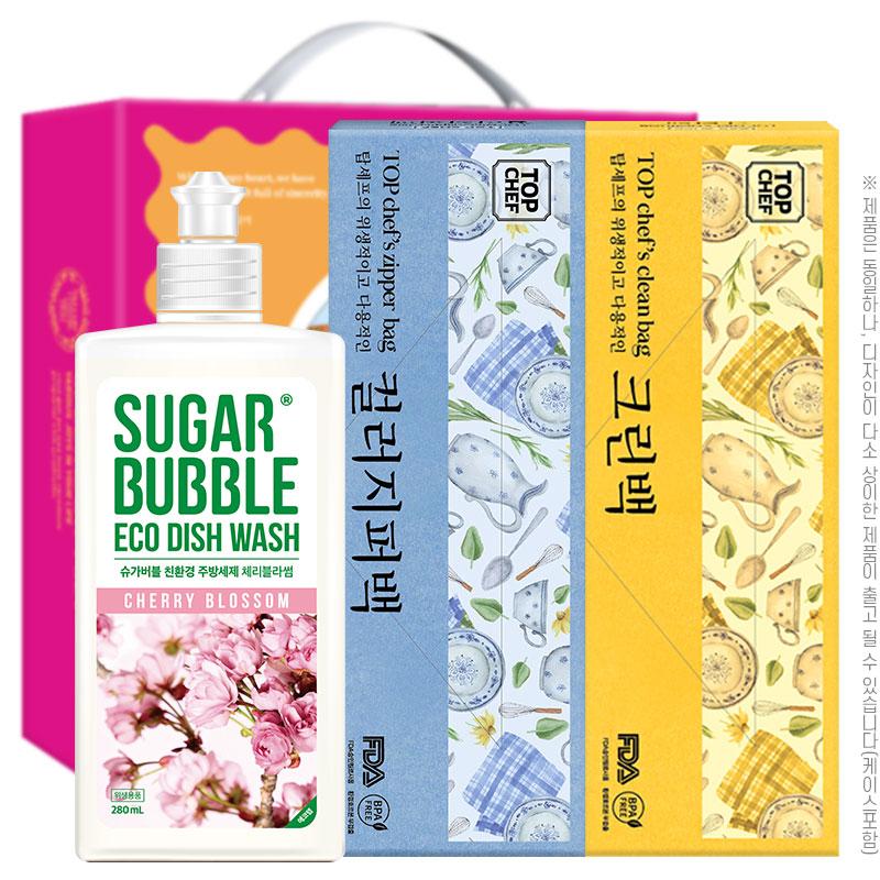 슈가버블 주방세제280용기 컬러지퍼백 크린백(3종)