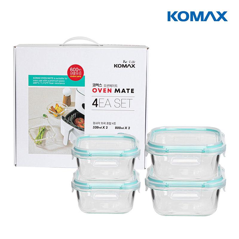 (박스단위만구매가능)코멕스 오븐메이트정사각차곡혼합4조(520ml2종,800ml2종)