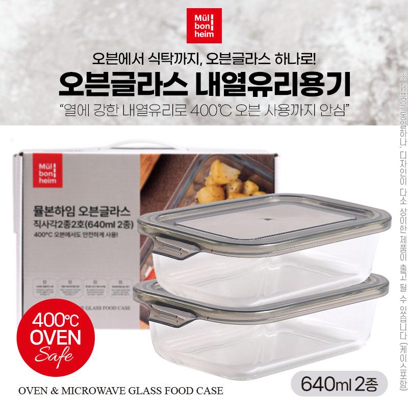 (400℃오븐가능)뮬본하임 오븐글라스직사각2종2호(640ml2종)